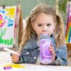 - Flip-Top трубочка: Мягкая силиконовая трубочка, которая отлично подходит для обучения детей пить через трубочку. Крышка легко закрывает трубочку, чтобы поддерживать её в чистоте, когда поильник не используется.