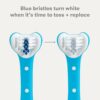 Мягкие закругленные щетинки бережно очищают зубы и десны, не причиняя ребенку дискомфорта. Кроме того, индикатор времени замены поможет вам вовремя обновлять щетку, когда щетинки поблекнут с синего до белого цвета.