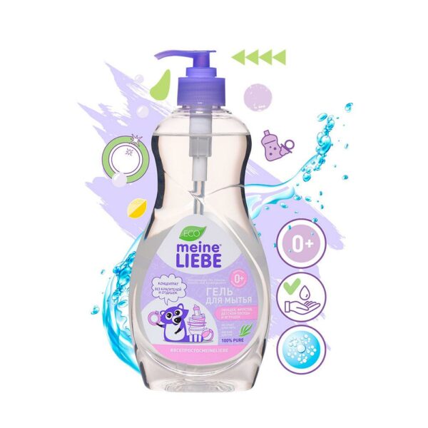Гель Meine Liebe изготовлен из безопасных компонентов, не содержит агрессивных химических веществ, красителей и ароматизаторов. Легко смывается, подходит для мытья детской посуды, овощей и фруктов. Концентрат 485 мл обеспечивает длительное использование и удобство дозирования. Средство гипоаллергенно и протестировано на безопасность для малышей.