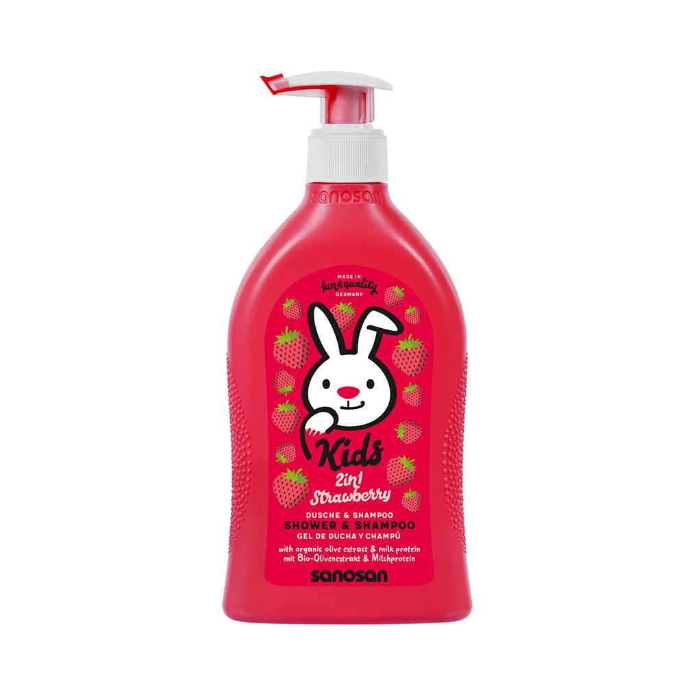 Гель-шампунь Sanosan Kids 2в1 создан на основе натуральных компонентов, которые ухаживают за чувствительной детской кожей. Формула обогащена экстрактом клубники, который придаёт приятный аромат и питает кожу витаминами. Средство не щиплет глаза, легко смывается и не вызывает сухости. Оно подходит для ежедневного применения и помогает родителям сэкономить время, ведь одно средство заменяет и гель для душа, и шампунь.