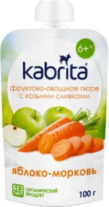 Kabrita Пюре со вкусом моркови, сливки козьего молока, мягкая упаковка 100 г