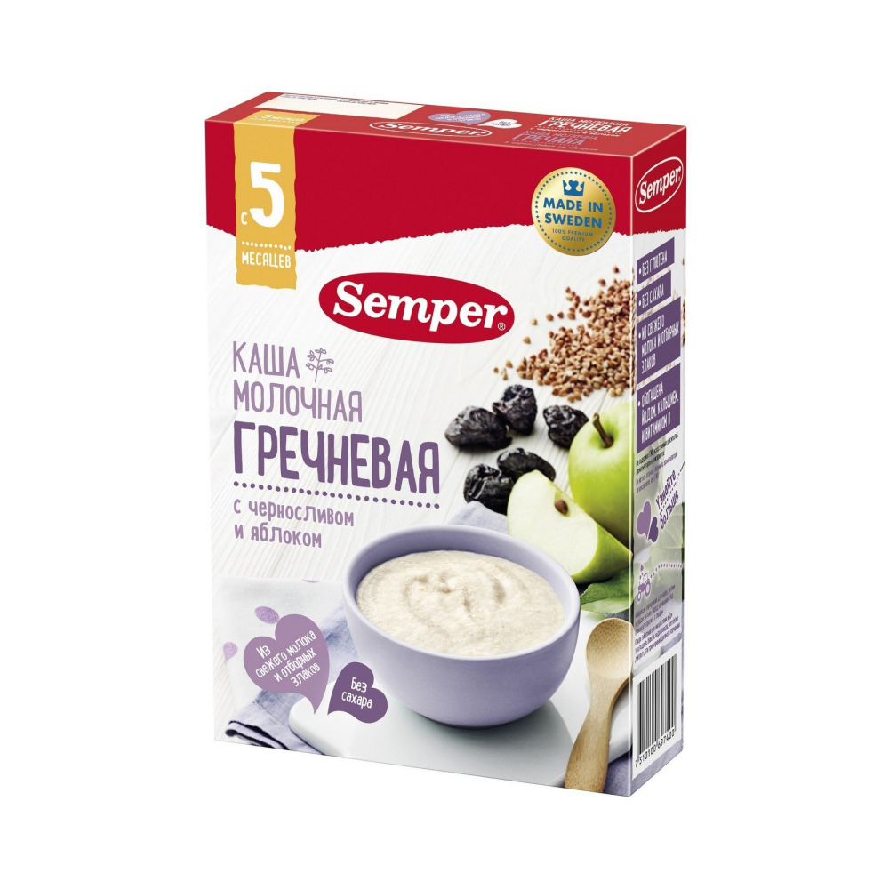 Закажите кашу SEMPER молочную гречневую с черносливом и яблоком 5м+ 180 г на Brandyol.uz уже сегодня и обеспечьте своему малышу вкусное, полезное и безопасное питание от проверенного бренда.