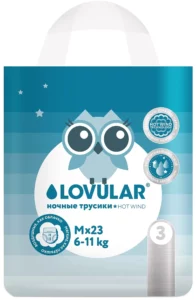 Ночные подгузники-трусики Lovular Hot Wind разработаны для максимального комфорта и сухости кожи малыша ночью. Эта специальная серия включает популярную технологию HOT WIND, обеспечивающую мягкость и нежность благодаря обработке паром.