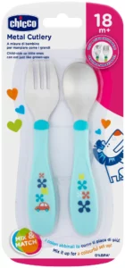 Набор столовых приборов Chicco MetalCutlery в синем цвете — идеальный выбор для детей от 18 месяцев, обеспечивающий удобство и безопасность во время приёма пищи. Этот набор включает вилку и ложку из нержавеющей стали, адаптированные по размеру для детских ручек, что помогает детям легко держать приборы самостоятельно.