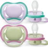 Пустышка Philips Avent Ultra Air SCF244/23 предназначена для детей от 6 до 18 месяцев. В комплект входят две пустышки, каждая из которых выполнена в ярком и привлекательном дизайне. Пустышки имеют легкий нагубник с большими вентиляционными отверстиями, что обеспечивает отличную вентиляцию кожи малыша и предотвращает раздражения.