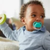 На изображении видно, что пустышки представлены в нежных пастельных оттенках розового, голубого, зеленого и кораллового цветов. Этот минималистичный дизайн подчеркивает их стиль и универсальность.