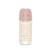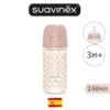 Стеклянная бутылочка Suavinex 240 мл с соской 3м+, розовая и противоколиковым клапаном