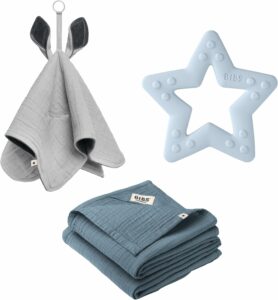 BIBS Baby Shower GOTS Baby Blue – yangi tug‘ilgan chaqaloqlar va ularning ota-onalari uchun mukammal to‘plam. Bu to‘plam baby shower sovg‘asi sifatida yoki yangi ota-onalar uchun maxsus sovg‘a bo‘lishi mumkin.