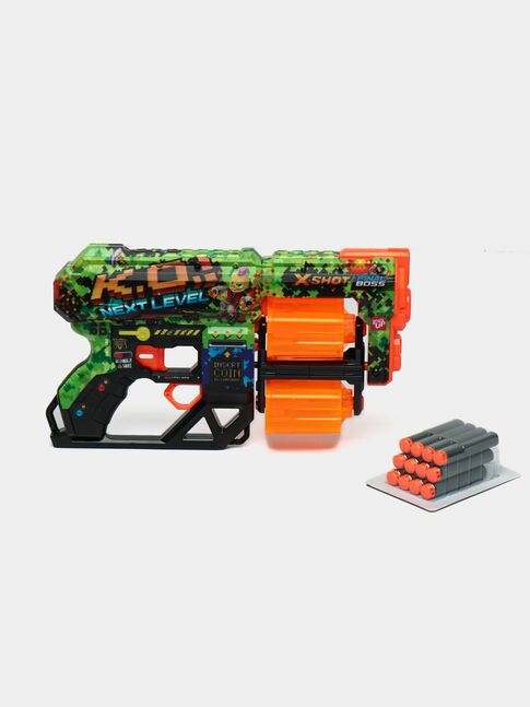Blaster X-Shot Skins Dread Dart K.O. faol dam olish uchun ajoyib tanlovdir. Yumshoq dartlar tufayli xavfsiz o‘yin ta’minlanadi. Blaster bolalarda aniq nishonga urish, harakatlarni muvofiqlashtirish va jamoaviy ruhni rivojlantiradi.