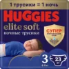 Huggies Elite Soft 3 – bolalar uchun kechasi qulay va quruq bo‘lishini ta’minlash uchun mo‘ljallangan tungi taglik-trusiklar. Maxsus yutuvchi qatlam va yumshoq materiallar bolajoningizni tinch uxlatadi.