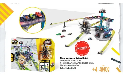 Metal Machines Spider Strike (O‘rgimchak hujumi) o‘yin to‘plami — kichik poyga ixlosmandlari uchun eng qiziqarli va dinamik trek. U xavfsiz materialdan tayyorlangan, mustahkam tuzilishga ega va 3 yoshdan katta bolalar uchun mos. Katta o‘rgimchak figuralari o‘yinni yanada hayajonli qiladi, Metal Machines mashinalari esa tezlik va qiziqishni ta’minlaydi. Brandyol.uz orqali siz original Metal Machines Spider Strike to‘plamini O‘zbekiston bo‘ylab buyurtma qilishingiz mumkin.