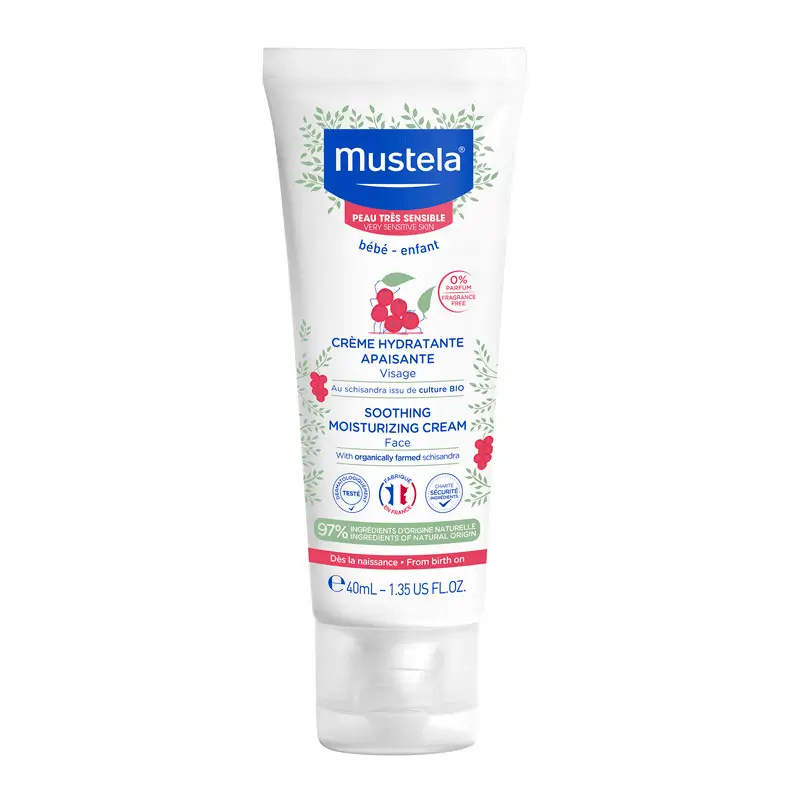 Mustela yuz kremi juda sezgir teri uchun, shisandra bilan, 40 ml — chaqaloqlar va bolalar yuz terisini parvarish qilish uchun mo‘ljallangan maxsus vositadir. Juda sezgir teri tashqi ta’sirlarga tez javob qaytaradi va qizarish hamda noqulayliklar paydo bo‘lishi mumkin.
