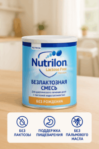 Nutrilon Premium Laktozasiz aralashmasi laktoza intoleransiga ega bo‘lgan chaqaloqlar uchun maxsus ishlab chiqilgan. Laktoza o‘rniga oson hazm bo‘ladigan glyukoza siropi ishlatiladi, bu esa laktoza yetishmovchiligi belgilarini tez bartaraf etadi. Aralashma tarkibidagi ARA/DHA yog‘ kislotalari miya va ko‘rish tizimini rivojlantiradi, qo‘shimcha nukleotidlar esa ichak devorlarini mustahkamlaydi va ovqat hazmini yaxshilaydi. Tug‘ilgandan boshlab yagona oziq manbai sifatida va uzoq muddat foydalanish mumkin.