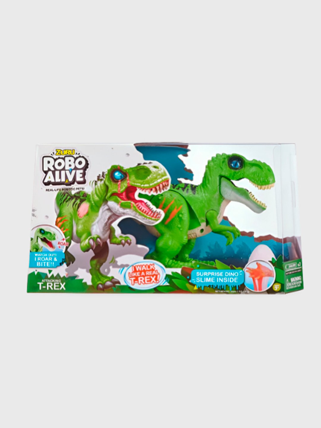 Interfaol o‘yinchoq Robo Alive Attacking T-Rex — bu haqiqiy dinozavrni eslatuvchi o‘yinchoq bo‘lib, uning real harakatlari va tovushlari bolalarni hayratda qoldiradi. U xavfsiz materialdan tayyorlangan, yorqin dizaynga ega va 3 yoshdan katta bolalar uchun mos. Robo Alive T-Rex boshini, dumini va panjalarini harakatlantiradi, shuningdek, o‘kiradi, bu esa uni yanada qiziqarli qiladi. Ushbu o‘yinchoq farzandingiz uchun unutilmas sovg‘a bo‘ladi. Brandyol.uz orqali original Robo Alive o‘yinchoqlarini O‘zbekiston bo‘ylab buyurtma qilish mumkin.